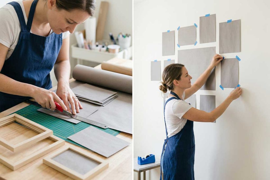 4. Using gentle painter's tape, stick the paper mockups to the wall and move them around as much as you like!